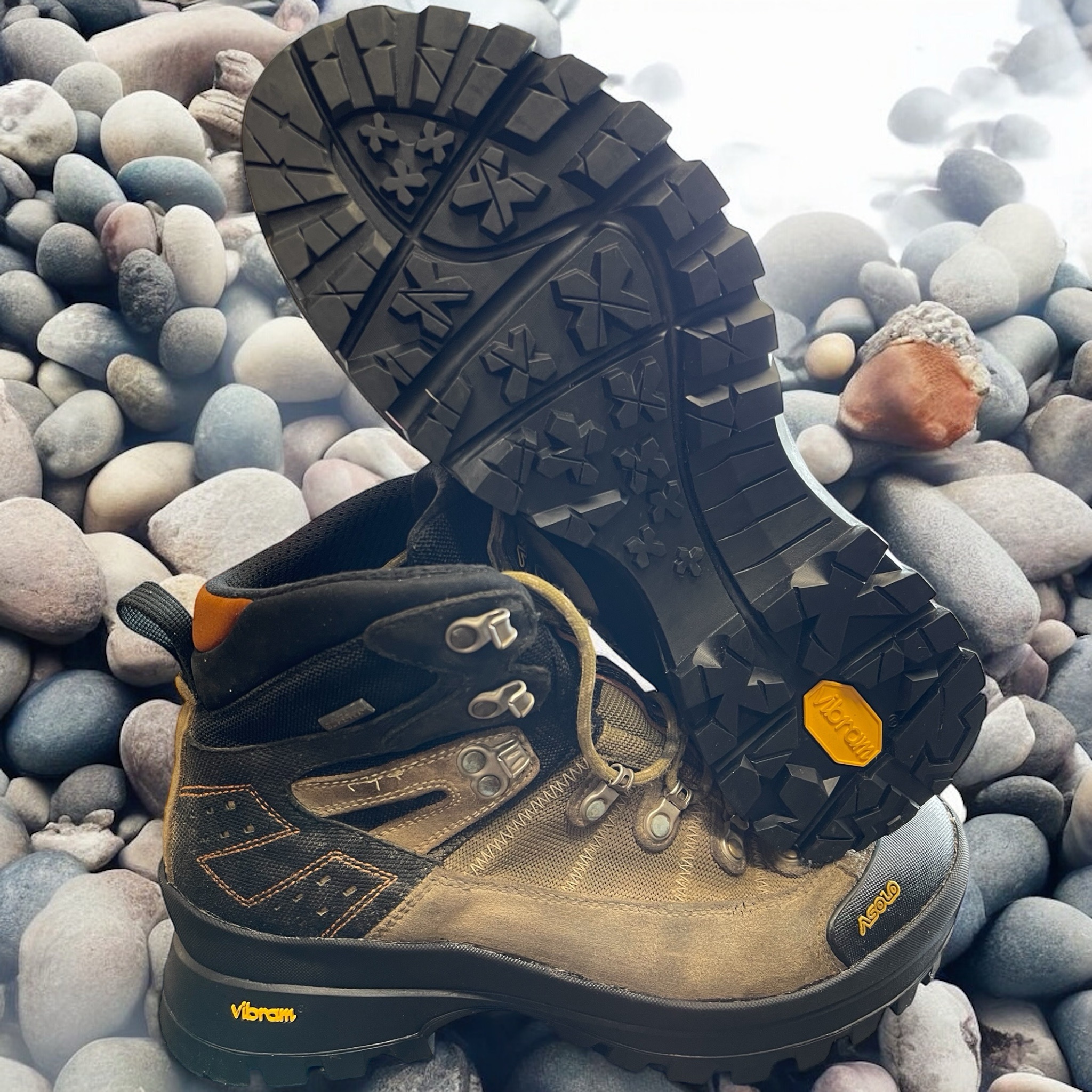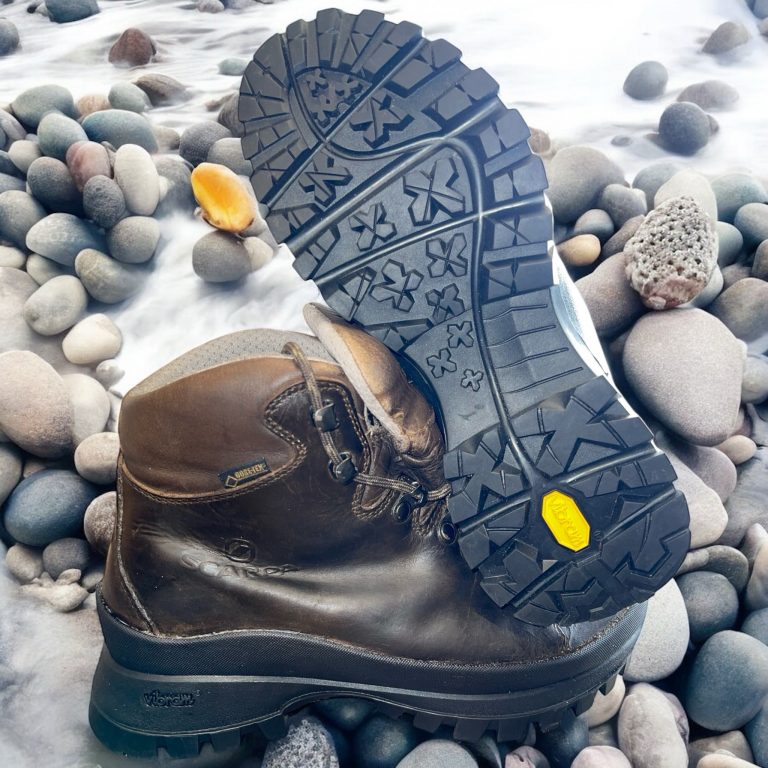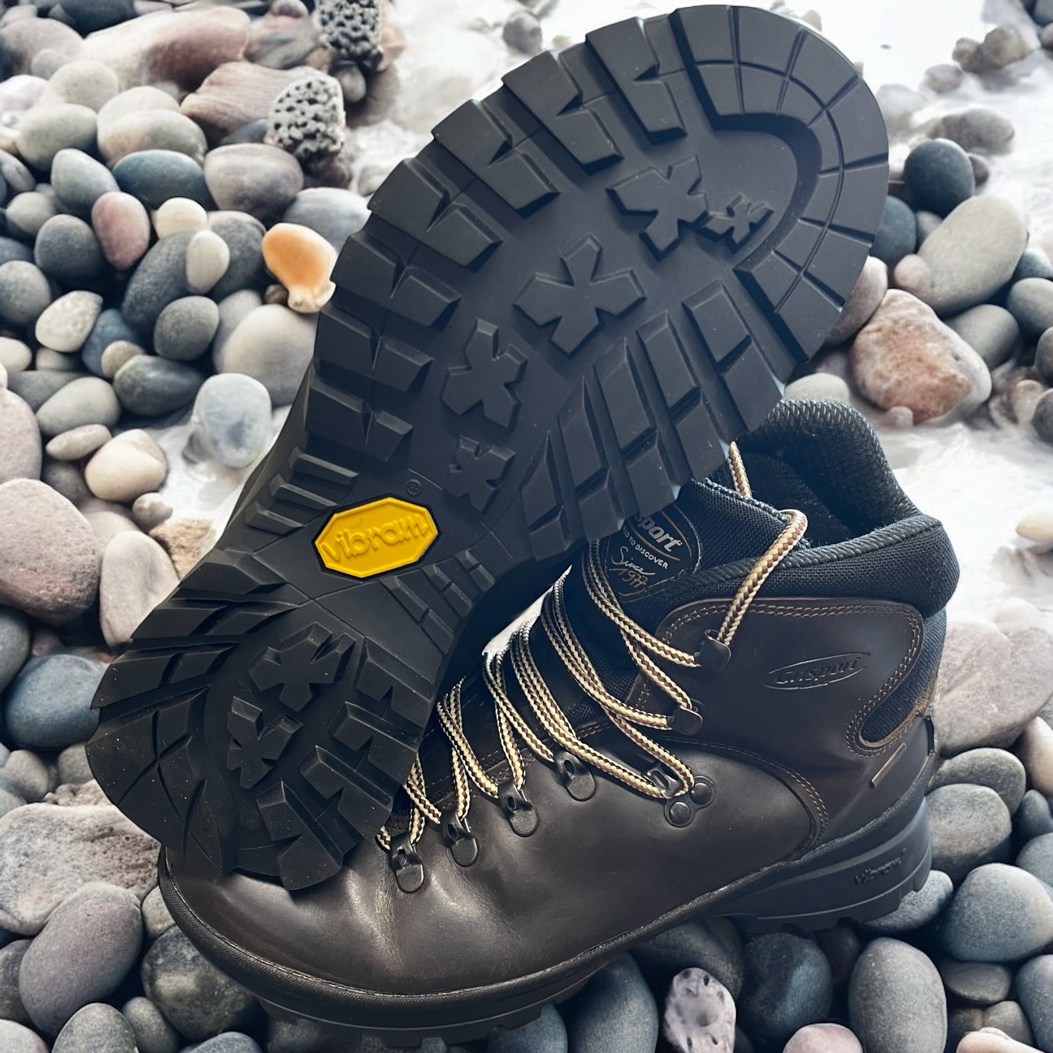 This sole is composed of classic Vibram elements, this is one of our go-to cup sole units for walking boots, It has a shock-absorbing compound built into the unit. safe to walk on wet ground and very durable.